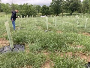- 450 Virginia native deciduous tublings/acre (250 Canopy/200 Understory – with tree tubes, stapled mats, and stakes), planted 10 ft. on center. Only Virginia native trees are allowed